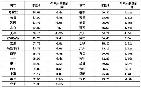 各地區(qū)日照時間參考表
