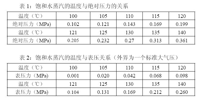一些軟包裝企業(yè)所采購的實驗用蒸煮鍋,當溫度表顯示為121℃時,有的蒸煮鍋的壓力表示值為0.12~0.14MPa,有的蒸煮鍋則為0.16~0.18MPa。另據(jù)某食品廠反映,當其蒸煮鍋的壓力顯示為0.2MPa時,溫度表的示值只有108℃。