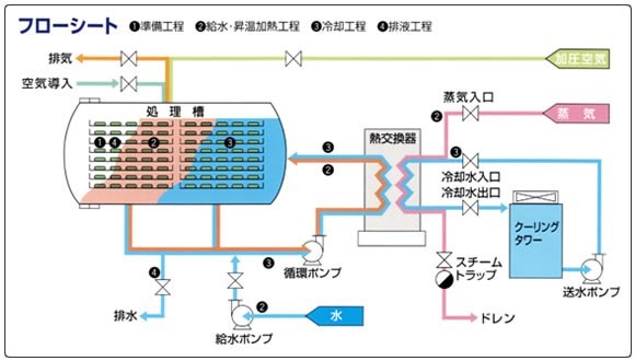 從工作原理、生產(chǎn)流程上看,該企業(yè)生產(chǎn)的熱水噴淋式的軟包裝食品殺菌裝置與世界上其他企業(yè)的產(chǎn)品基本上是一致的。下圖是實驗設備的生產(chǎn)流程。??