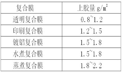 根據(jù)復(fù)合基材的不同,可以使用不同的上膠量,如下表:
