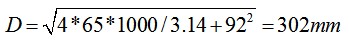1、已知膜長1000m,膜厚度65μm,紙管內徑76mm,紙管壁厚度8mm,求卷外徑D。