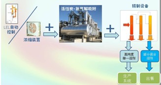 將低濃度的尾氣進行濃縮,降低尾氣總處理量,提高濃度,減少VOC處理設備的總投入,提高運行效率,減少運行成本。