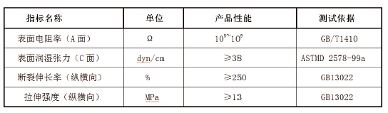 對制作的高表面能防靜電聚乙烯薄膜(見圖2)作主要性能測試,測試結果見表1: