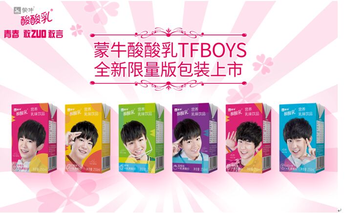 蒙牛酸酸乳借勢TFBOYS兩周年粉絲見面會發(fā)布TFBOYS全新限量版包裝,相信定會引發(fā)粉絲新一輪的擁簇與搶購,值得期待!