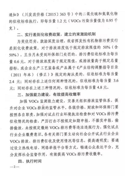 近日,繼北京市、上海市、江蘇省、安徽省和湖南省開征揮發性有機物VOCs排污費之后,四川省成為全國第六個省份、正式發布文件通知試點開征VOCs排污費,從2016年3月1日起執行。