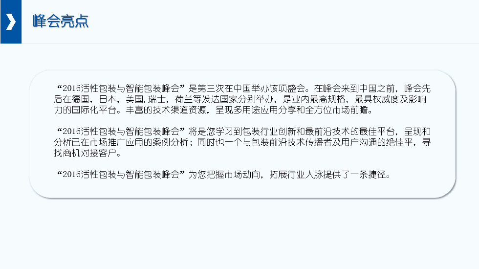 2016活性包裝與智能包裝峰會 ——改善食品安全與延長貨架期