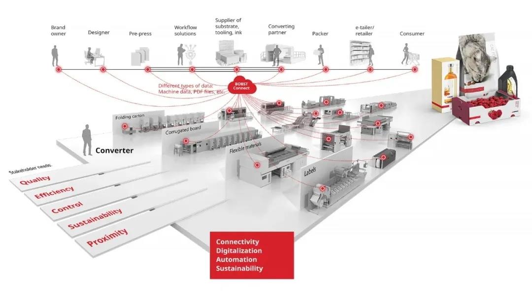 博斯特的愿景正在塑造一個(gè)新的現(xiàn)實(shí),其中,連接性、數(shù)字化、自動(dòng)化和可持續(xù)性是包裝生產(chǎn)的基石。博斯特將繼續(xù)提供一流的機(jī)器,而且現(xiàn)在正在添加更多智能化、軟件功能和基于云的平臺(tái),以使包裝生產(chǎn)比以往更出色。