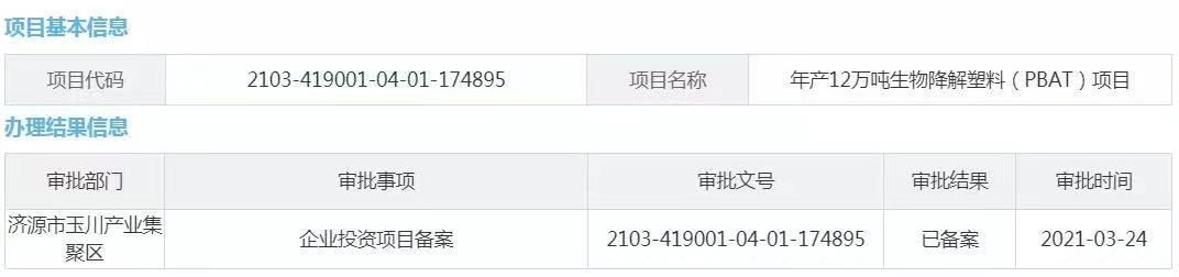 3、濟源市恒通高新材料有限公司年產 12 萬噸生物降解塑料PBAT項目